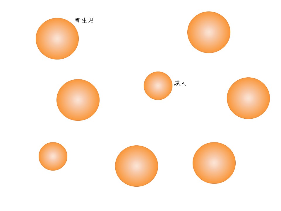 ところが、新生児の赤血球は大人より大きくて、ときには1.5倍くらいの容積があるので、輸血された大人の赤血球と新生児の血液は輸血されたかどうか大抵は一目で判断できます。