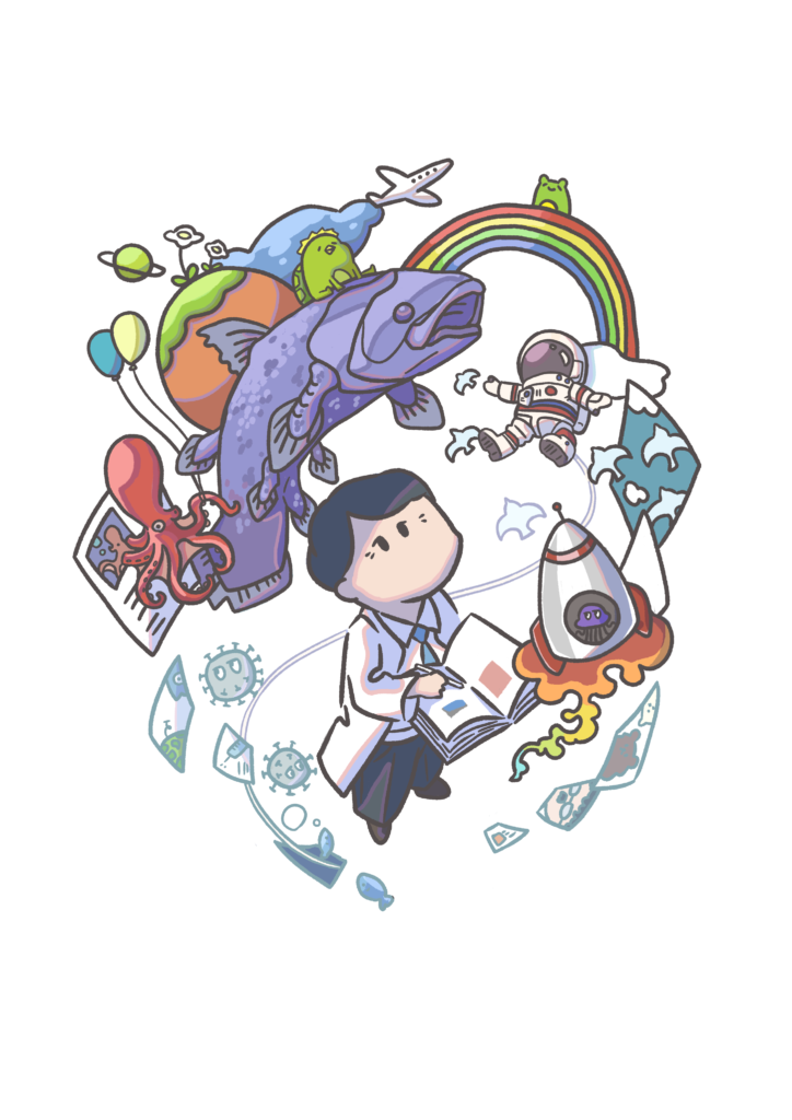 小木曽先生をキャラクターにしたこのイラストはワクワクに満ちた先生のイメージにピッタリです。